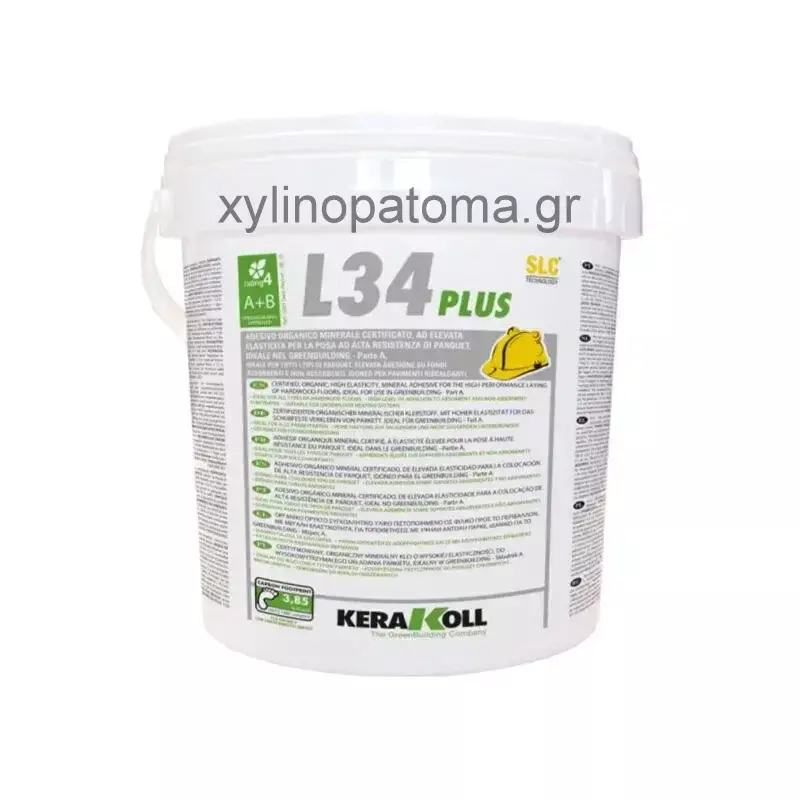 Η Slc Eco L34 Plus της Kerakol είναι κόλλα ξύλινων δαπέδων δύο συστατικών με μεγάλη ελαστικότητα και αντοχή. Η συγκεκριμένη κόλλα είναι πιστοποιημένη ως φιλικό υλικό προς το περιβάλλον χωρίς διαλύτες, με χαμηλότατες εκπομπές πτητικών οργανικών ενώσεων.